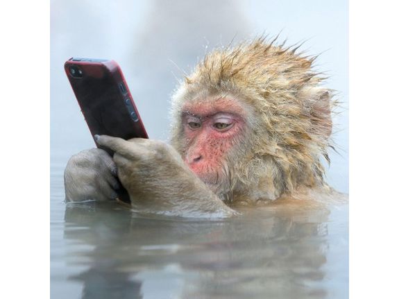 Looking for a card that’s as unique and captivating as the person you're sending it to? Check out this stunning and quirky design featuring a monkey playing with a phone in water, captured by the talented photographer Marsel Van Oosten